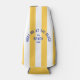 Blue Meet Me At The Beach seltzer bouteille glacière est pour votre voyage de groupe de plage ou se réunir. Bandes de cabane jaune avec lettrage de plage bleu en détresse personnalisée. Personnalisez avec les détails de votre voyage à la plage... année et destination de la plage. Parfait pour une plage familiale ou d'amis se réunir ou club de plage bachelorette ou comme souvenir pour un voyage passé. Accessoires correspondants disponibles dans la collection Meet Me At The Beach Yellow Cabana Stripe Collection.