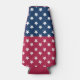 Glacière de bouteille Koozie Sleeve imprimé avec bloc de couleur bleu et rouge avec les étoiles blanches dessin par TheFabricSeal à Zazzle.com #ZazzleMade Bleu et rouge demi-bloc de couleur géométrique avec étoiles blanches dessiné dans un style inspiré du drapeau américain. Parfait pour mélanger et faire correspondre les américains patriotiques drapeau des étoiles et rayures, fierté nationale, événements politiques américains et 4ème. De Juillet célébration de la naissance de notre beau pays. Refroidir et attraper une imprimante personnalisée isolée peut refroidir en matériau spécial haute densité pour une isolation supplémentaire. Parfait pour garder vos bières et autres boissons toujours fraiches lors d'un pique-nique et lors d'une belle journée d'été. Convient à toute bouteille standard de 12 oz.