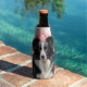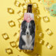 Great gift idea for dog moms and dog lovers, a beer cozy for bottles (shown) cans and more options and it features a Border Collie sitting against a backdrop of big, bold pink lilies in a botanical dog lover image.