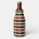 Ce glacière de bouteille a une conception géométrique d'un plaid avec des lignes brun et blanc sur un arrière - plan noir.