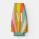 blue and orange pink yellow Retro colorful stripes pattern monogram bottle cooler ,