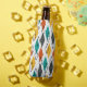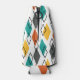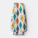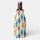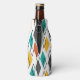 Ce glacière de bouteille a un design moderne du milieu du siècle de diamants en orange, jaune, turquoise, gris, et dessiné éparpillé sur un champ de blanc.