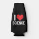 Un glacière de bouteille de professeur de science cool en noir qui présente un motif de science I Love génial avec un coeur rouge enveloppé d'un modèle atomique.
