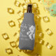 Belle, moderne et élégant bouteille de mariage / peut cool design caractéristiques jolies fleurs blanches avec texte blanc personnalisable sur gris foncé arrière - plan