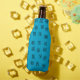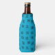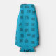 Ce glacière de bouteille a un design moderne du milieu du siècle de labyrinthe dispersé sur un champ de turquoise.