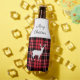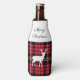 Conception glacière de la bouteille de Noël avec un motif en plaid rouge et un imprimé en cerf blanc. Accessoires de fête de Noël correspondants disponibles au studio de design Dots & Stripes.