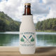 Beaux glacières de bouteille à thème rustique, avec votre nom de famille et maison de lac, cabine, chalet ou autre texte désiré et sa date établie, le tout dans la typographie de style rustique. Ce design unique et personnalisé comprend des barques bleues turquoises, des paddles et des pins en vert tendre. La couleur crème est facilement personnalisable pour correspondre à votre décoration actuelle. Pour voir d'autres modèles comme celui-ci, n'hésitez pas à visiter ma boutique ici à "Zazzle.com/Rustic_Charm". Merci .