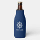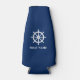 Votre texte personnalisé, nom ou nom de bateau avec un Glacière à roue de navire classique nautique sur une bouteille bleue de la Marine.