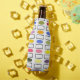 Ce glacière de bouteille a un design moderne du milieu du siècle de rectangles et ovales répétitifs dans les couleurs du jardin fleuri.
