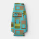 Ce glacière de bouteille a un design moderne du milieu du siècle de rectangles arrondis dans les tons vert et marron avec des trous dans eux sur un champ de turquoise. Si vous aimez le design mais préférez différentes couleurs, envoyez-moi un message.