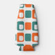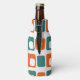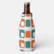 Ce glacière de bouteille a un design moderne du milieu du siècle de rectangles orange répétitifs avec rectangles blancs à l'intérieur alternant avec rectangles turquoises.