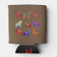 Les dix-neuf chevaux Can Cooler motif sur ce peut cool provient de 19 différents chevaux en bois conçus, sculptés et peints par Julia Morrill