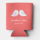 Ce mariage rose peut koozie présente marié et marié oiseau s'embrasser. Le texte personnalisable vous permet d'ajouter les noms de la mariée et du marié ainsi que leur date de mariage.