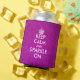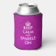 Faux violet / parties scintillant rose gardez calme et brillent sur les refroidisseurs de canettes Faites votre propre drôle garder calme et continuer sur le design parodique. Vintage keepcalmandcarryon typographie avec couronne. Créez votre propre parodie humoristique de calme avec ce modèle. Couleur arrière - plan personnalisable. Amusante idée de faveur pour mariage glamour, fête d'anniversaire, bachelorette etc. Des scintillants brillants et brillants design. Impression recto verso.