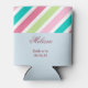 Pink and Blue marié à être peut cool est un de l'une des jolies koozie pour votre fête de la douche nuptiale. La moitié supérieure est composée de bandes diagonales rose et verte, et la moitié inférieure de bandes arrière - plans bleues. Les informations de la mariée sont en police rose personnalisable. Can Cooler Design : WeddingsbyRhoadie Illustrations géométriques : AMBillustrations http://www.etsy.com/shop/AMBillustrations/