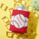 Cette boîte peut refroidir avec des boules de canapé rouges et blanches entourées d'un arrière - plan rouge. Le texte dit : "Maman au softball". Customisez facilement le texte pour un fan de sport spécial ou retirez entièrement. Idéal pour la Fête des Mères ou n'importe quelle période de l'année !