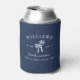 Commémorez vos vacances en famille, votre voyage, votre croisière ou votre réunion grâce à ces refroidisseurs personnalisés uniques. Le design personnalisé en bleu marine et blanc classique comprend votre nom de famille, le type d'événement, l'année et la destination flanquant une paire d'illustrations silhouettes de palmiers blancs.