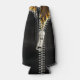 Lance le feu ! Image de cuir noir avec une fermeture éclair en métal ouvrant révélant des flammes.