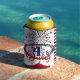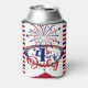 Refroidir cet été avec la fête de l'Indépendance 4 juillet Peut refroidir. Convient à l'extérieur le refroidisseur de canettes maintient votre boisson parfaitement isolée. Le design comprend des éléments du Jour de l'Indépendance américaine - Drapeau, étoiles et rayures en calligraphie rouge, blanc et bleu et moderne. L'image centrale est personnalisable.