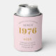Celebrate a milestone 50th birthday with this chic, personalized can cooler! Featuring a sophisticated pink and grey design and the iconic 'Born in 1976' year, it's the perfect gift for keeping drinks cold in style. Customize it with the recipient's name for a unique keepsake they'll cherish. Ideal for birthday parties, celebrations, or a special souvenir.