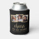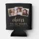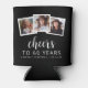 Ce 60ème anniversaire personnalisé peut refroidir comprend un collage de trois photos carrés personnalisées au-dessus de l'expression "Cheers to 60 years" dans élégant script de calligraphie blanche et sans serif police sur un arrière - plan noir. Ajoutez le nom et l'anniversaire de l'invité d'honneur ci-dessous. Une excellente façon de célébrer quelqu'un qui a soixante ans !