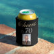 Bonjour à 70 Photo 70th Birthday Can Cooler. Typographie tendance aux couleurs blanches et dorées sur un arrière - plan noir. Personnalisez le glacière avec votre photo et le numéro d'âge.
