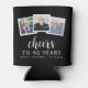Ce personnage 90ème anniversaire peut refroidir comprend un collage de trois photos carrés personnalisées au-dessus de l'expression "Cheers to 90 years" en élégant script de calligraphie blanche et sans serif police sur un arrière - plan noir. Ajoutez le nom et l'anniversaire de l'invité d'honneur ci-dessous. Un excellent moyen de célébrer quelqu'un qui a quatre-vingt-dix ans !