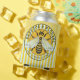 Ces refroidisseurs de canettes personnalisées et efficaces sont parfaits pour un mariage à thème abeille. Elles comprennent une abeille originale dessinée à la main sur un nid d'abeille avec un arrière - plan de rayures jaunes et de miel dégoulinant. Utilisez les modèles faciles pour ajouter les noms de mariée et de mariée et la date du mariage. Vous pouvez également modifier le texte "Amour comme sucré comme miel". Le dessin se répète à l'arrière.