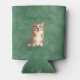 Oeuvre d'un mignon corgi assis sur un arrière - plan vert avec pattes coriaces. Idéal pour les amoureux de les chiens de tous âges.