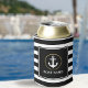 Ancre rayée Noir et Blanc Nautique Gold Ring Nom du bateau Cadre blanc Can Cooler