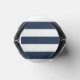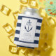 Commémorez votre mariage dans le style nautique de preppy avec ces refroidisseurs monogrammed de la faveur de mariage, avec une illustration de l'ancre du navire en bleu marine flanquée par vos initiales. Personnalisez avec les noms du couple, la date du mariage et l'emplacement. Un arrière - plan rayé blanc et marine finit cette conception pour un look marin estival.