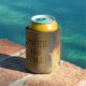 Garde-canette au-delà de la colline avec motif de feu de joie. Parfait pour célébrer autour d'un brasero ou d'un feu de camp. Modifiez la formulation ou supprimez-la à votre guise. Un fond de couleur sable beige avec des flammes et des étincelles est présent des deux côtés.