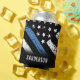 Cette conception comprend un drapeau de la police avec des rayures noires et blanches, ainsi qu'une fine bande bleue. Cette conception peut être plus cool pour montrer l'appréciation à un officier célébrant un anniversaire ou remercier un officier de l'application de la loi, shérif, capitaine ou chef à la retraite pour leurs années de service.