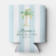 Aqua Blue Cabana Stripes Palm Beach Club Anniversaire Can Cooler