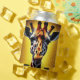 Belle Giraffe avec un Arrière - plan de Parties scintillant d'or, ce design présente une magnifique Giraffe africaine avec un Arrière - plan de Parties scintillant d'or.