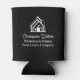 This professional realtor can cooler is custom made with your real estate company name under the modern cursive script for an open house. These chic custom black realty business promotional items feature a house logo image for home builder or realty agent company marketing.