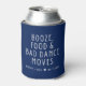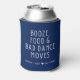 Un mariage amusant garde des faveurs pour vos invités mariages. Cozies de bière avec un design de texte bleu et blanc marine qui dit - Booze, nourriture et mauvais mouvements de danse. Customisez avec vos noms et votre date de mariage. Vous pouvez également ajouter un court message de remerciement en bas.