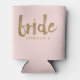 Cette mariée personnalisée peut refroidir est parfait pour célébrer des fêtes de bachelorette. Il est composé d'un arrière - plan rose vif, d'un texte en faux parties scintillant doré qui dit "mariée", et de votre propre nom ou message court dans le texte or correspondant.