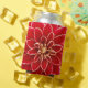 Close up vibrant photograph of a beautiful red Dahlia flower on favors and gifts.