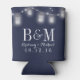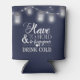 Ce mariage rustique et personnalisé peut refroidir avec l'expression "Avoir et tenir pour garder votre boisson froide" sur un arrière - plan bleu marine bordé de bocaux de mason brillants et de lampes à cordes. Customisez l'autre côté avec vos initiales, noms et date mariage. La couleur Arrière - plan est entièrement personnalisable pour correspondre à vos couleurs mariages.