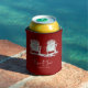 Rustic Adirondack transats de plage rouge bière blanche peut refroidir. Chalet d'été plage maison design maison de mariage faveurs. Copyright de l'image Marg Seregelyi Photography.