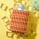 Cette boîte de refroidissement a un design Art Déco d'une plaque avec des lignes épaisses et fines en rouge, orange et jaune.