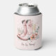 Célébrez la future mariée dans le style du sud avec ce refroidisseur de canette de douche de mariée personnalisé avec un design aquarelle de bottes de cowgirl rose blush, de florales délicates et d'un verre à champagne ! Avec un texte personnalisable comme « Douche de Mariage de Charlotte », c'est le cadeau souvenir ou le favori parfait pour votre célébration western ou à thème rustique.