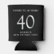 Raise a toast at your 40th birthday party with this fun black can cooler featuring "Cheers to 40 Years" and your name in simple white lettering.