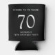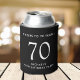 Raise a toast at your 70th birthday party with this black can cooler that features "Cheers to 70 Years" and your name in simple, modern white lettering.