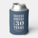 Commémorez un anniversaire spécial avec ces magnifiques faveurs personnalisées de fête peuvent refroidir. Décor moderne bleu et blanc avec "cheers and beers to XX years" en lettres blanches en gras. Ajoutez l'occasion et la date ci-dessous pour une tenue unique de fête d'anniversaire. Exemple illustré pour une fête de 30e anniversaire.