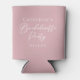 This girly dusty rose pink bachelorette party seltzer can cooler features classic white script for a bride who is going to have an upscale event for her wedding. Celebrate your friend with this feminine solid color on this chic, minimalist bridesmaid favor.