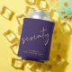 Fun purple can cooler for her 70th birthday party that features "seventy" in a chic gold script and her name in simple gold typography.