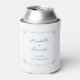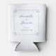 Add a chic coastal touch to your wedding with these nautical-inspired can cooler, featuring a delicate blue seashell border and elegant typography. Perfect for Nantucket, Cape Cod, or Hamptons weddings, these coolers enhance your seaside reception, yacht club celebration, or beachside cocktail hour with effortless elegance. Personalize with your names, wedding date, and location for a timeless, preppy wedding detail.