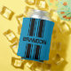 Classy noir double racing voiture rayures design motif sur un arrière - plan bleu moyen. Personnaliser avec le nom, le monogramme, les initiales ou le texte (limité) de votre choix. Conçu pour le sport automobile de course élégant, Nascar, Indy 500, Le Mans ou le fan de Formule Un Grand Prix de course, l'amoureux ou les propriétaires de voitures classiques, muscle cars, barres chaudes, spectacles de voitures